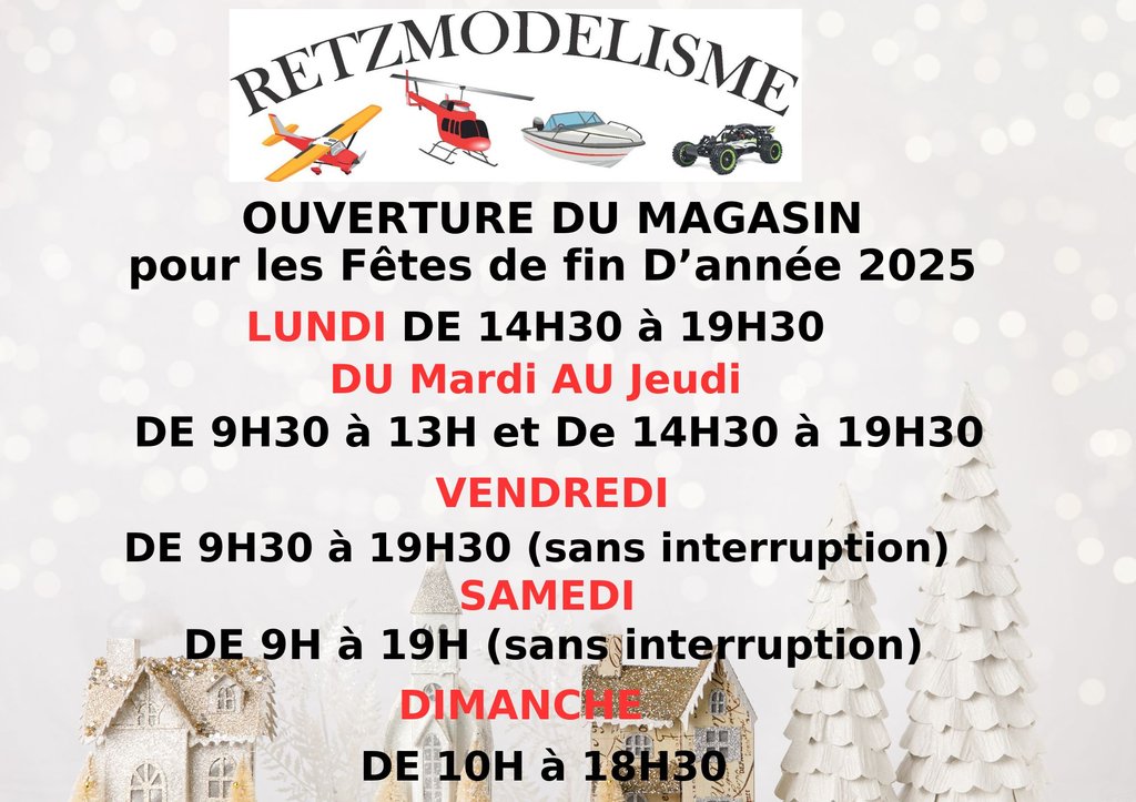 Le magasin RETZMODELISME modifie ses horaires d'ouvertures